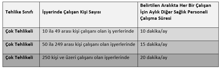 Yine yönetmeliğe göre tam süreli işyeri hekiminin görevlendirildiği iş yerlerinde, diğer sağlık personeli görevlendirilmesi şartı aranmaz. Ancak, iş sağlığı ve güvenliği hizmetlerinin daha etkin sunulması amacıyla bu işyerlerinde, iş yeri hekiminin talebi ve işverenin uygun görmesi halinde diğer sağlık personeli görevlendirilebilir.