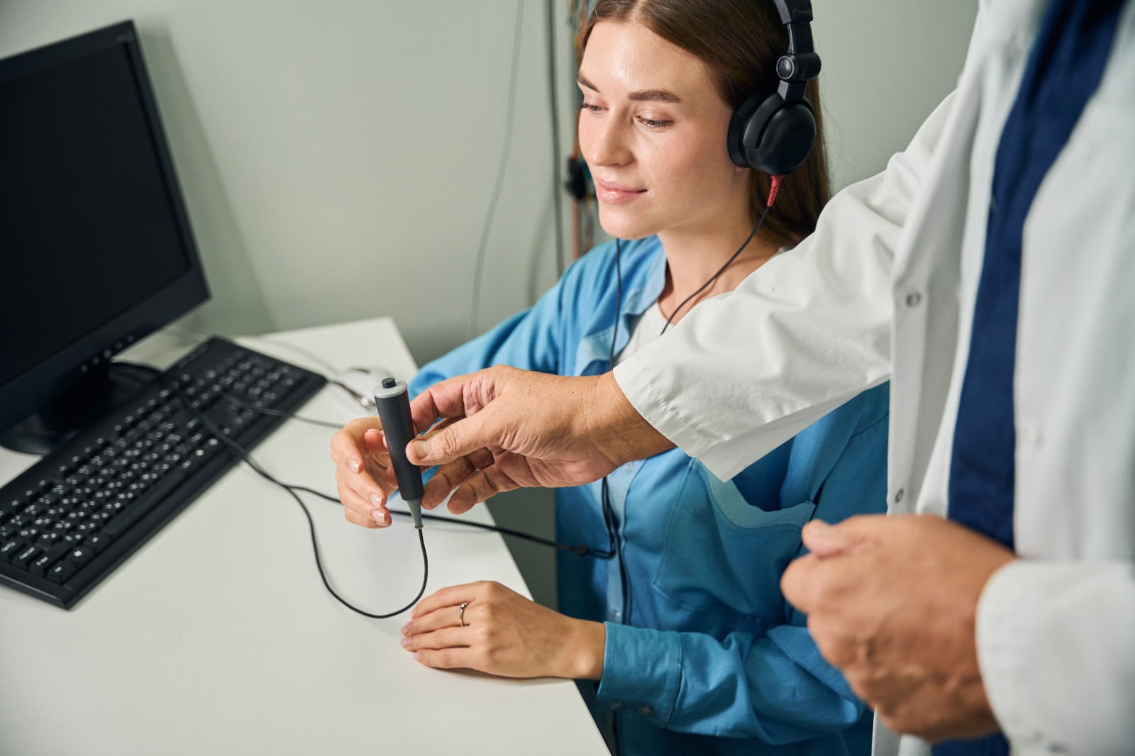 İşitme Cihazları: Odyometri testi için işitme cihazları veya kulaklıklar kullanılır. Bu cihazlar, kişinin kulaklarına yerleştirilir ve çeşitli frekanstaki sesler çalınır.